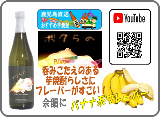 | 田村杜氏は「7年目してオレンジ系 フレーバーがたまたま強くなってきた」 実際、芋焼酎の香りの中に オレンジの風味が漂います | 常圧蒸留ですので、芋焼酎の呑みごたえを 残しつつ、バナナ系フレーバーを体感できます お湯割りでも上品なバナナ香を楽しめます |